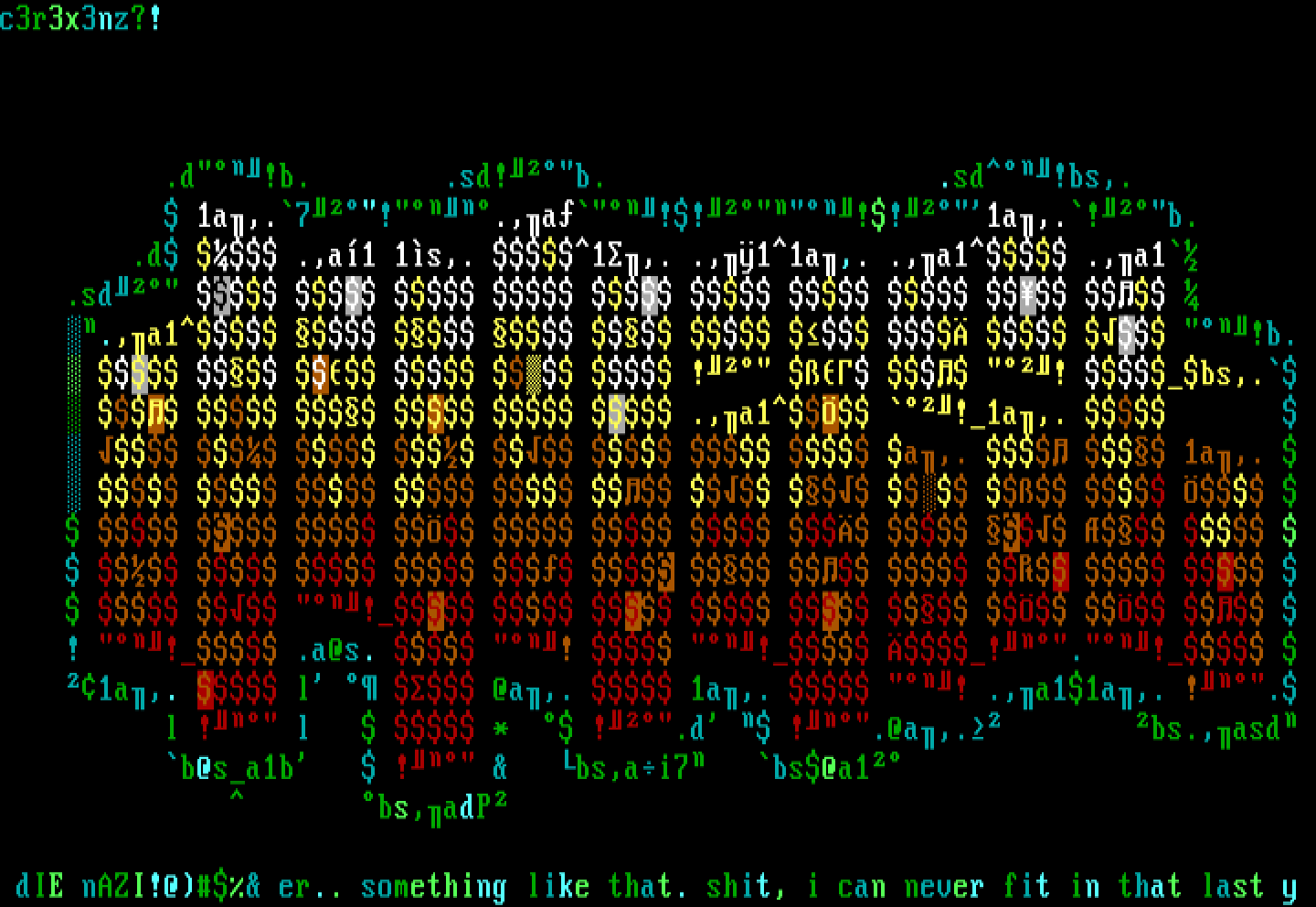 dIE nAZI!@ er.. something like that. shit, i can never fit in that last y