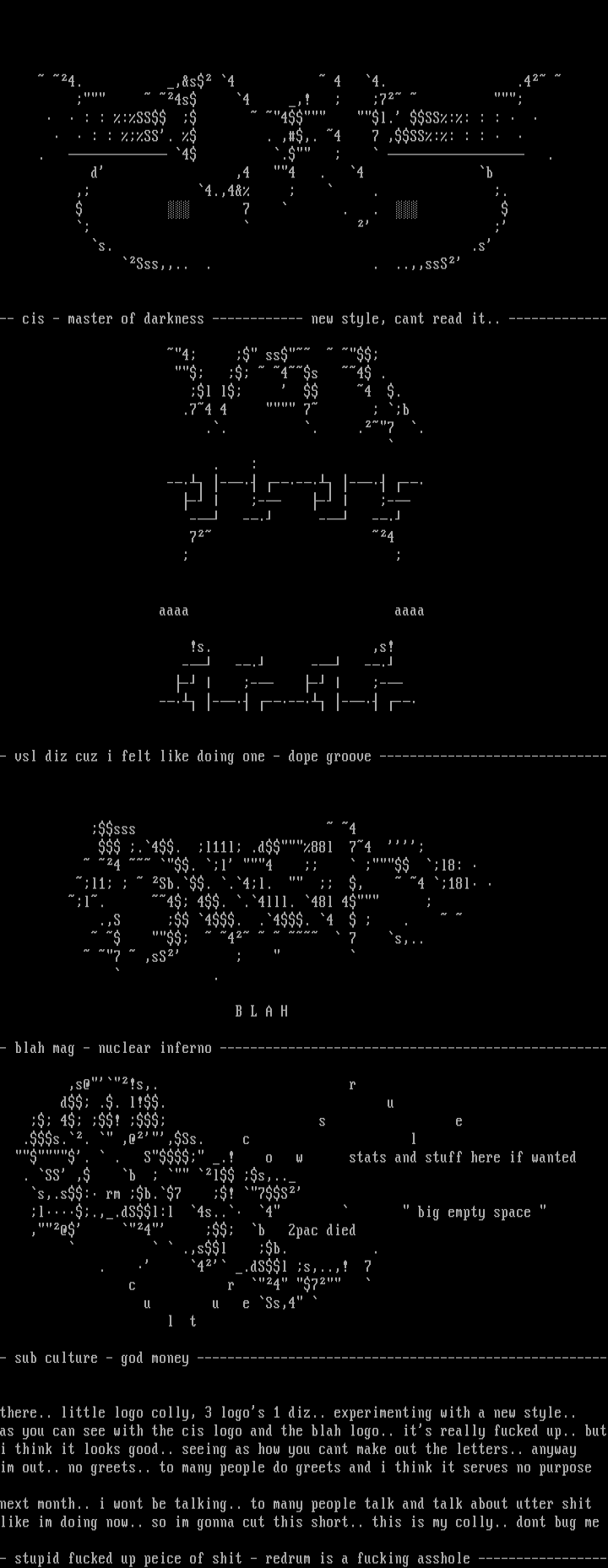 as you can see with the cis logo and the blah logo.. its really fucked up.. buti think it looks good.. seeing as how you cant make out the letters.. anyway