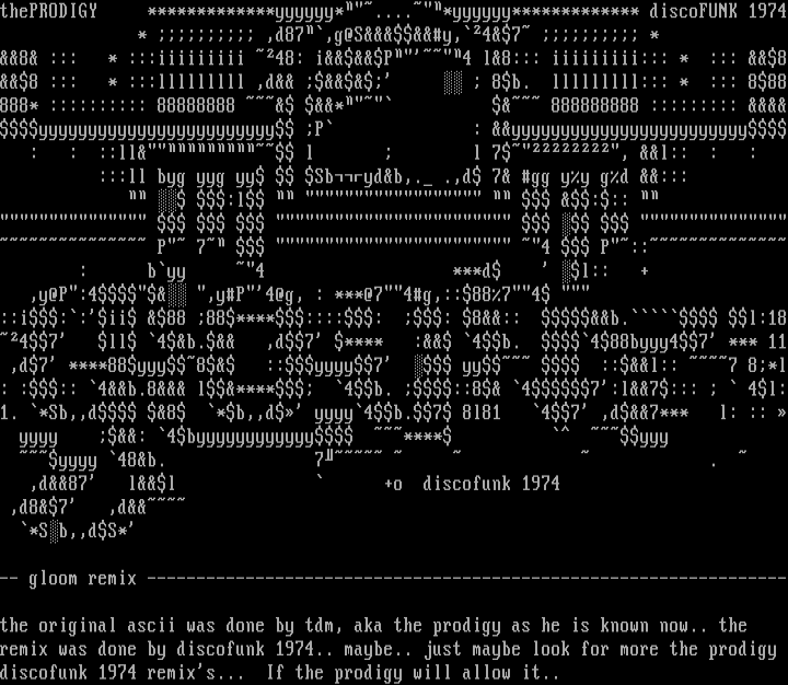 thePRODIGY *************yyyyyy*....*yyyyyy************* discoFUNK 1974 * ,d87,g@Sy,47 *