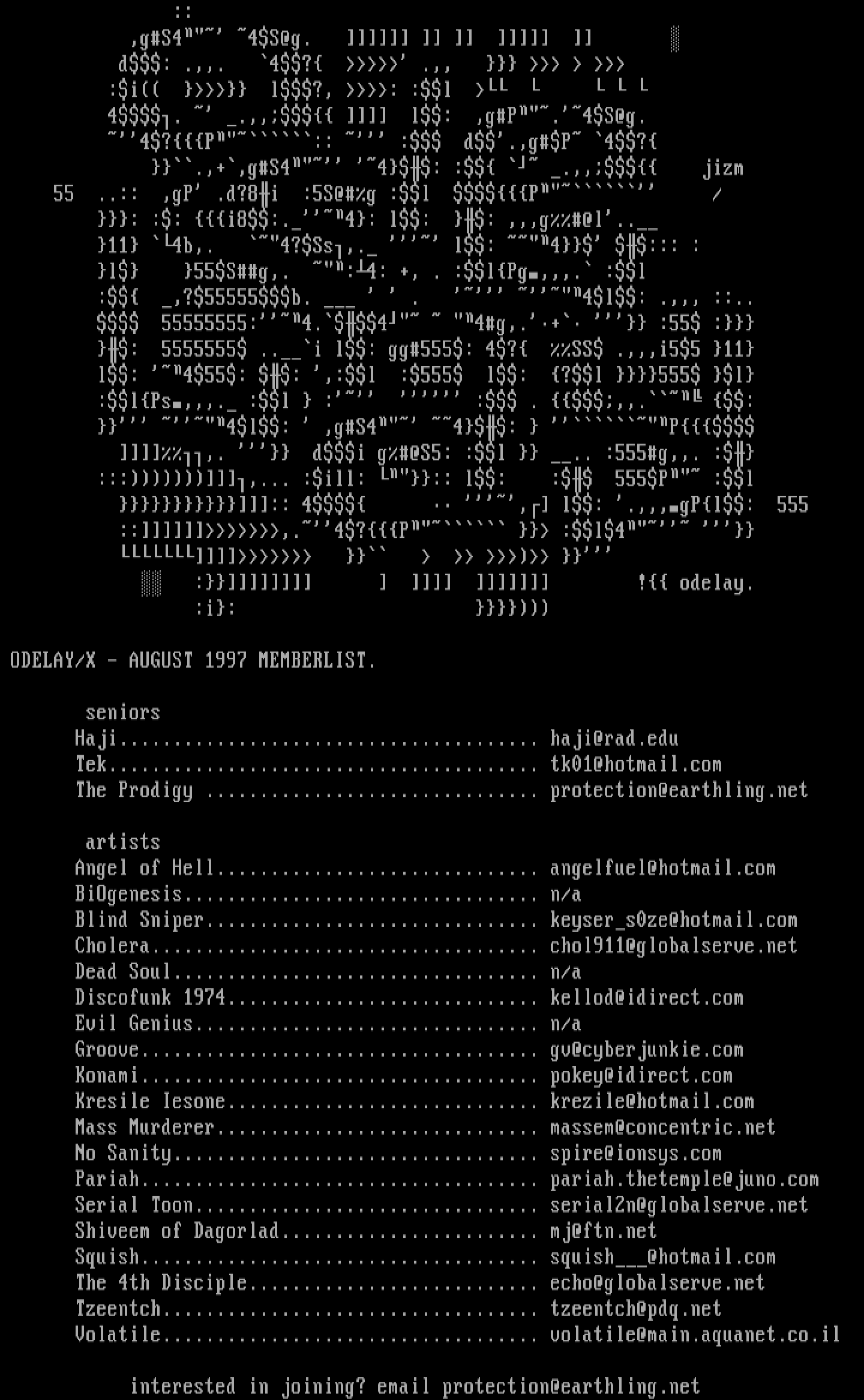 ODELAY/X - AUGUST 1997 MEMBERLIST.