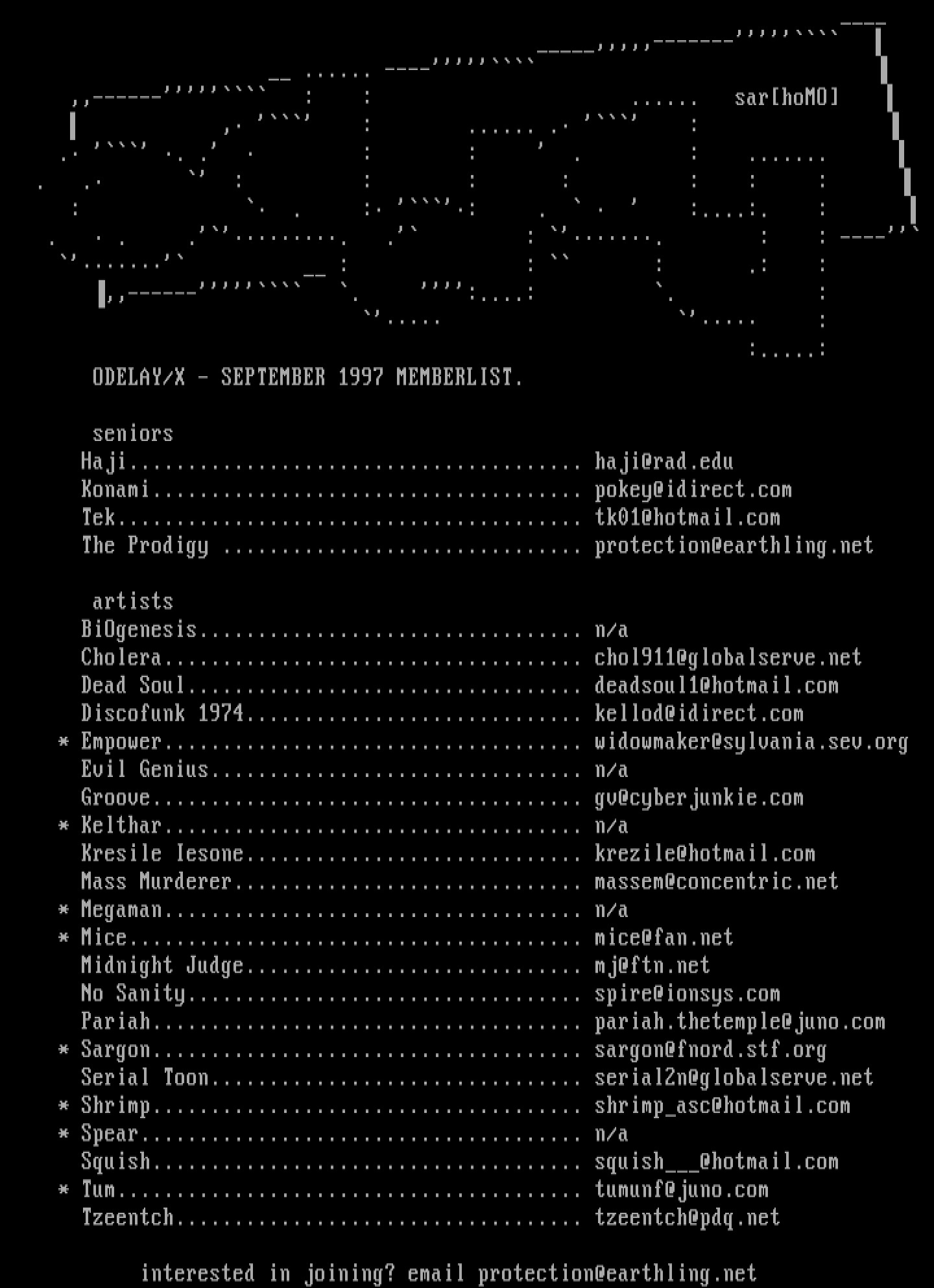ODELAY/X - SEPTEMBER 1997 MEMBERLIST.