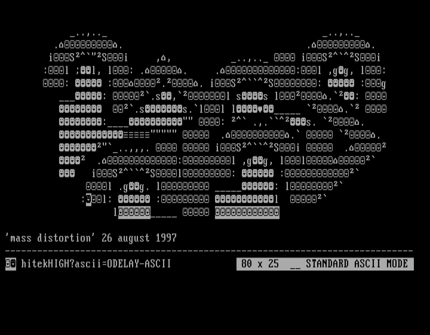 hitekHIGH?asciiODELAY-ASCII 80 x 25 STANDARD ASCII MODE