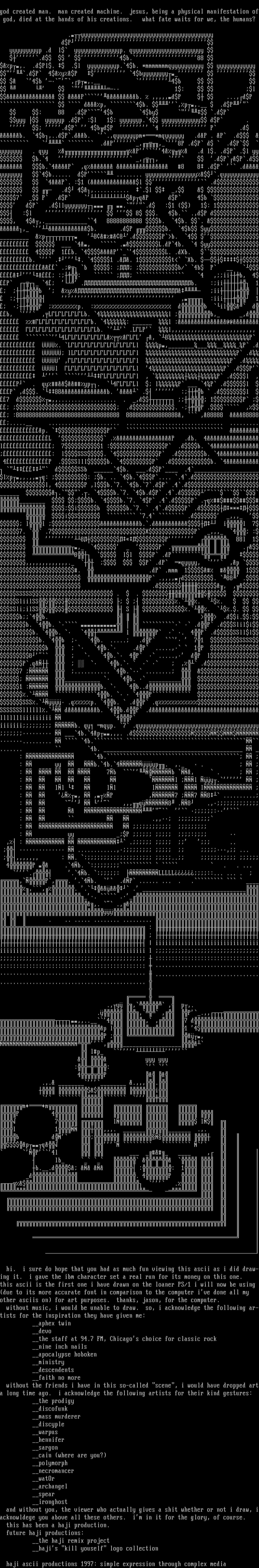 hi. i sure do hope that you had as much fun viewing this ascii as i did draw-ing it. i gave the ibm character set a real run for its money on this one.
