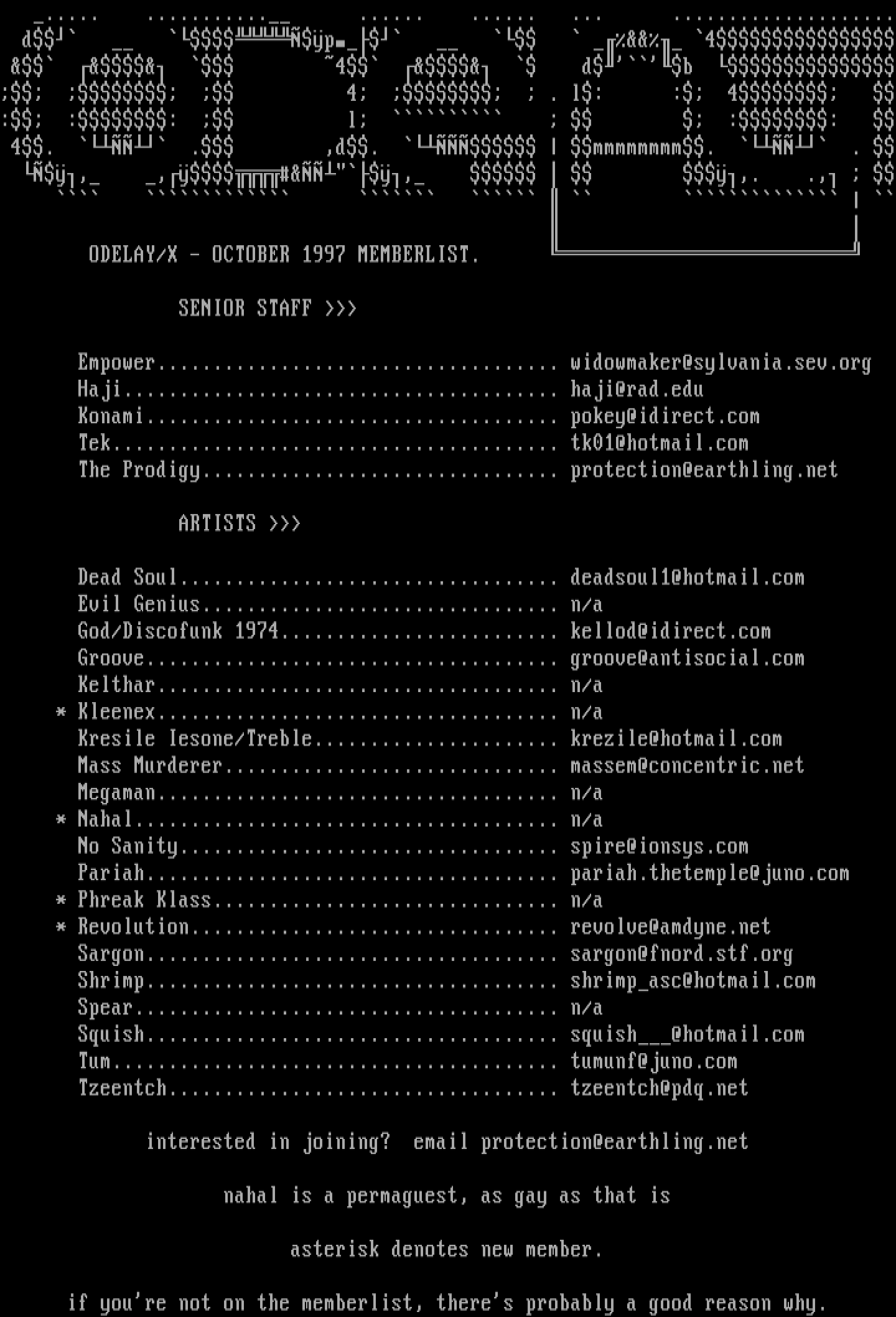 ODELAY/X - OCTOBER 1997 MEMBERLIST.