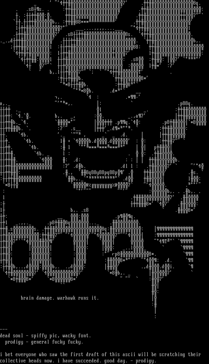 i bet everyone who saw the first draft of this ascii will be scratching their