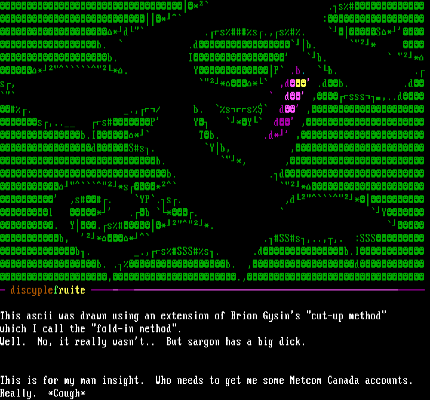 This ascii was drawn using an extension of Brion Gysins cut-up method