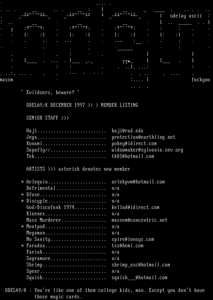 ODELAY/X DECEMBER 1997 MEMBER LISTING