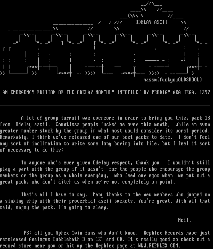 AN EMERGENCY EDITION OF THE ODELAY MONTHLY INFOFILE BY PRODIGY AKA JEGA. 1297