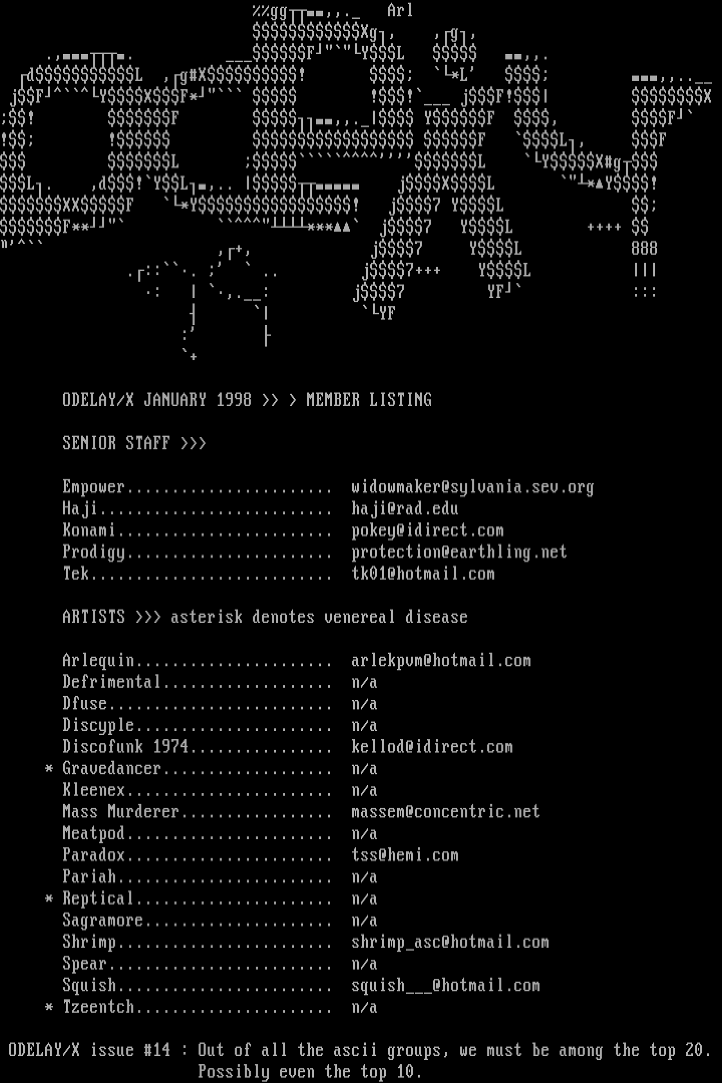 ODELAY/X issue 14 : Out of all the ascii groups, we must be among the top 20.
