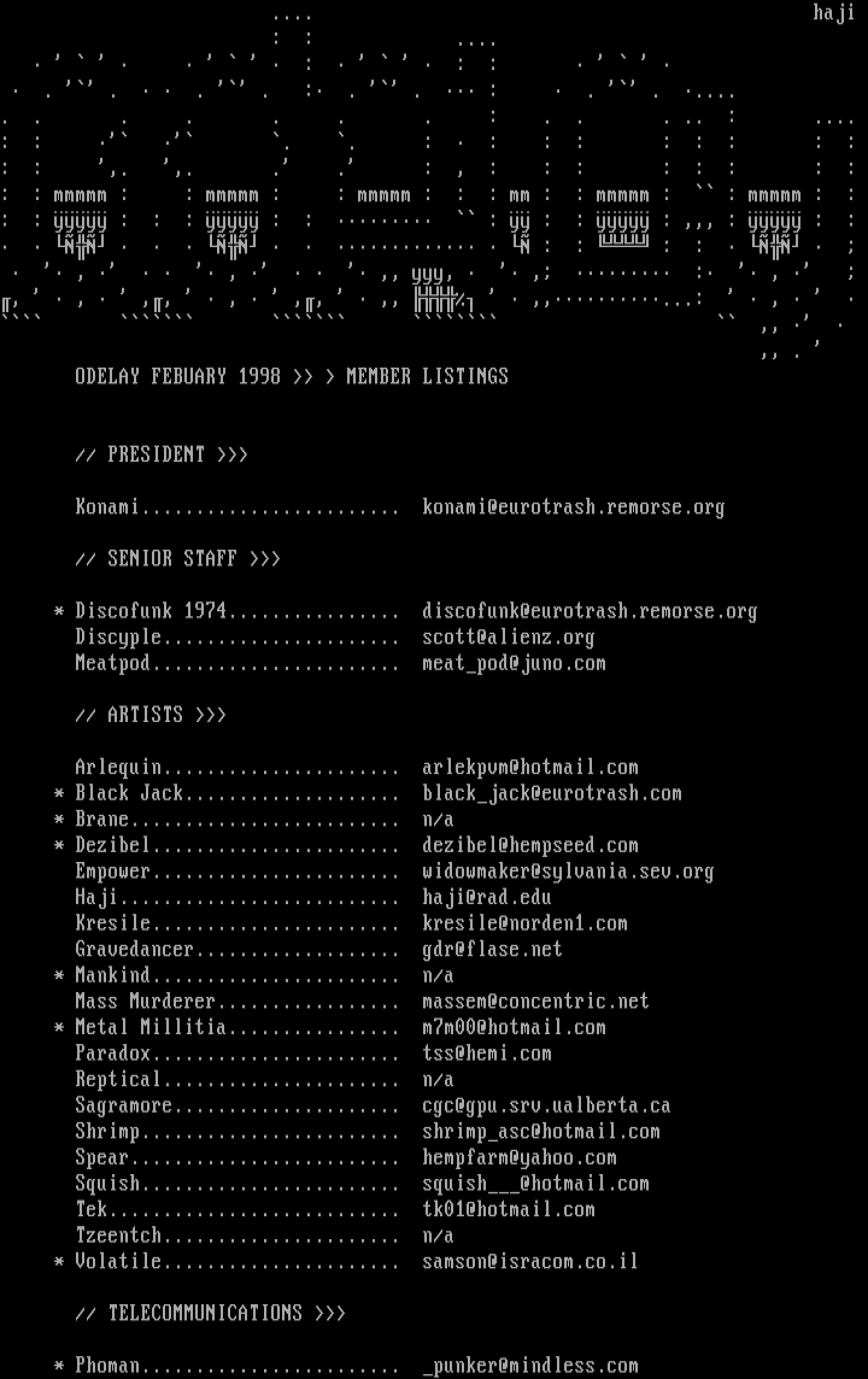 ODELAY FEBUARY 1998 MEMBER LISTINGS