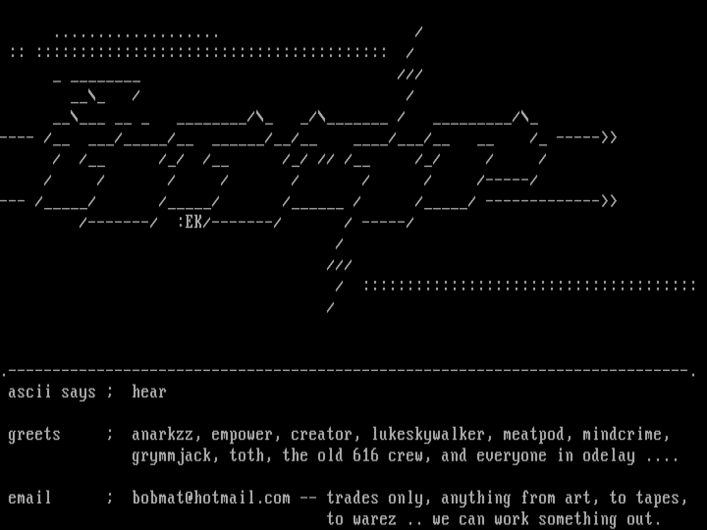 greets anarkzz, empower, creator, lukeskywalker, meatpod, mindcrime,