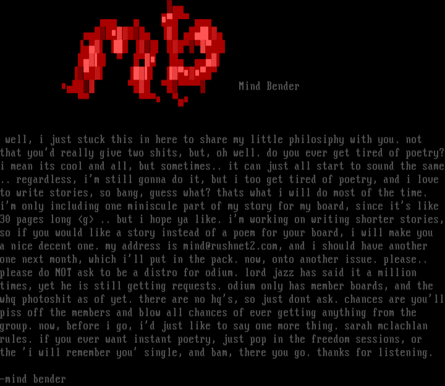 a nice decent one. my address is mind@rushnet2.com, and i should