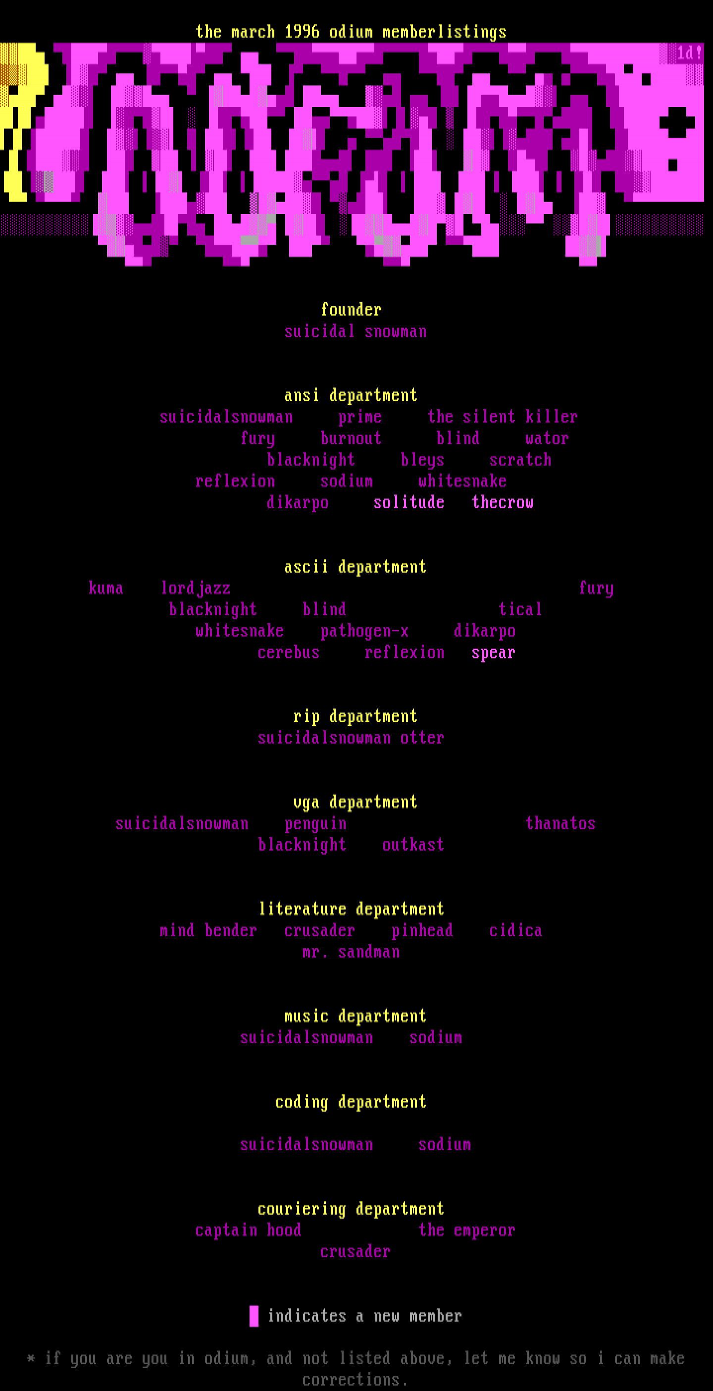 the march 1996 odium memberlistings