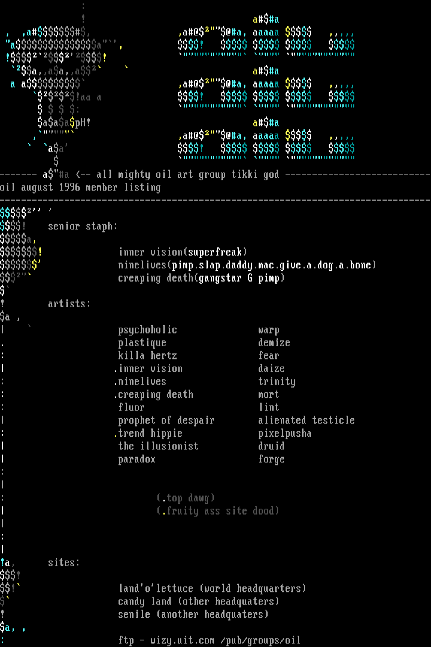 ------- aa -- all mighty oil art group tikki god ---------------------------oil august 1996 member listing