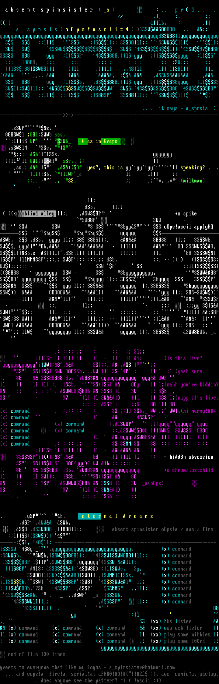 greets to everyone that like my logos - aspinsister@hotmail.com