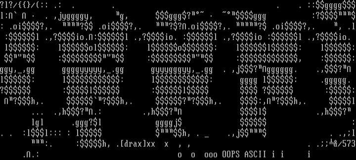 lgl .ggg?l ggggj :. . :ll::: : l h, . .,j . .,l :. :h, .draxxx x , , . ./573 ..: o o ooo OOPS ASCII i i i