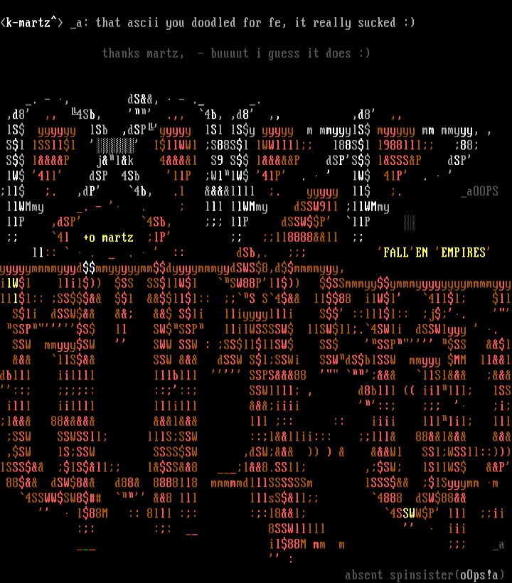 k-martz a: that ascii you doodled for fe, it really sucked :