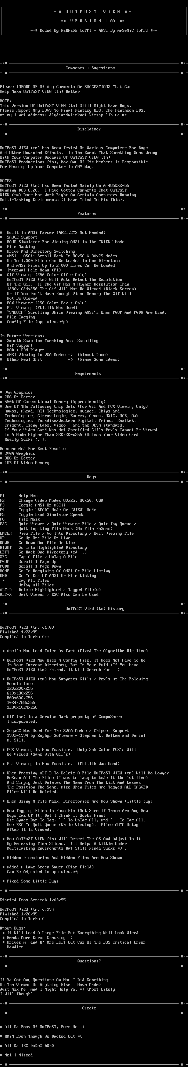 - OuTPoST ViEW (tm) Documentation
