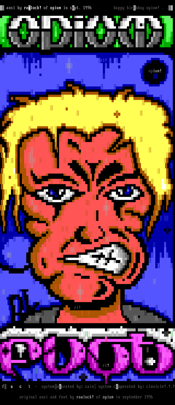 original ansi and font by rawlock! of opium in september 1996