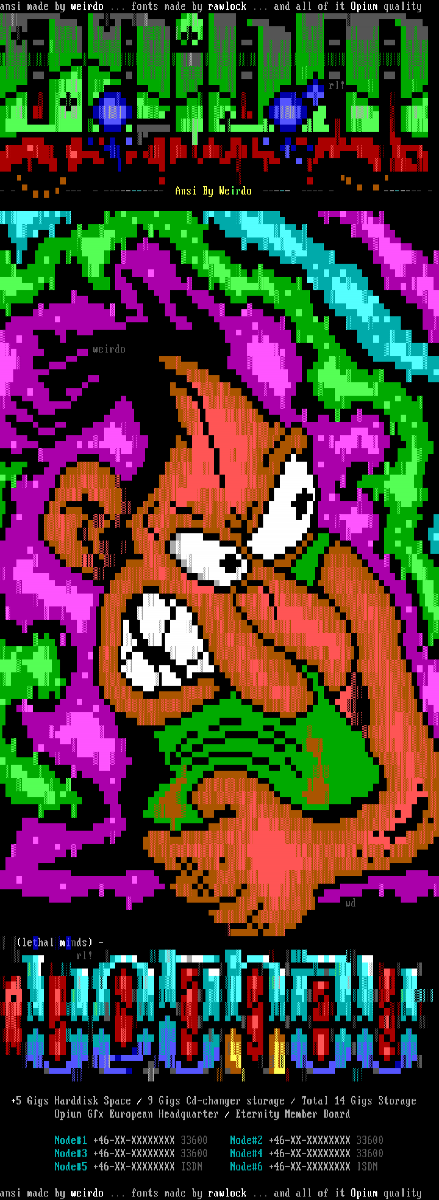 ansi made by weirdo ... fonts made by rawlock ... and all of it Opium quality