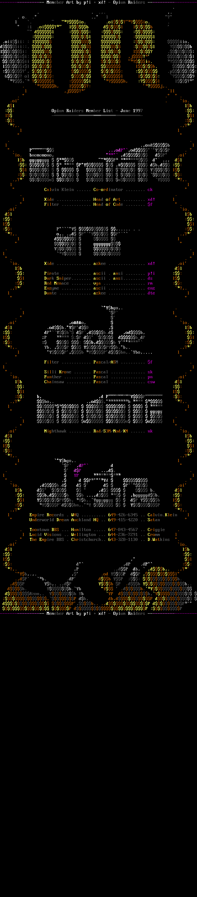 :: Opium Raiders Member List - June 1997 ::