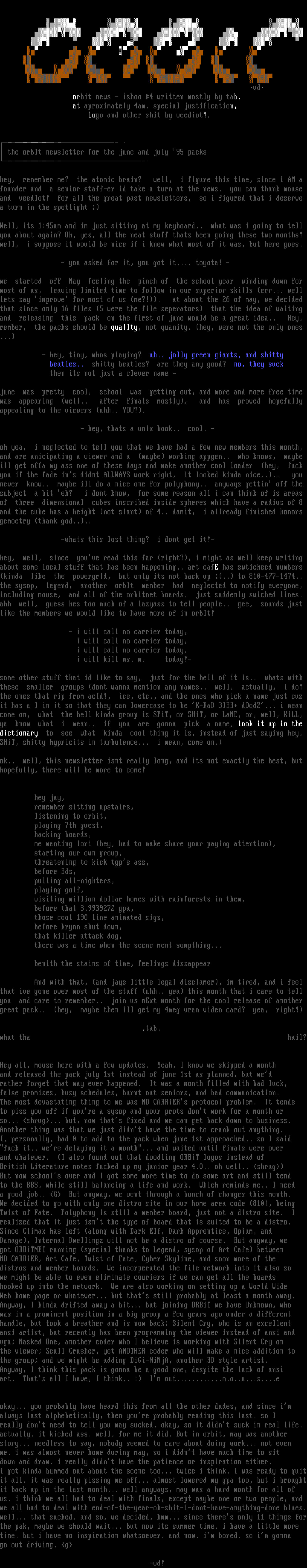 the sysop, legend, another orbIt member had neglected to notify everyone,