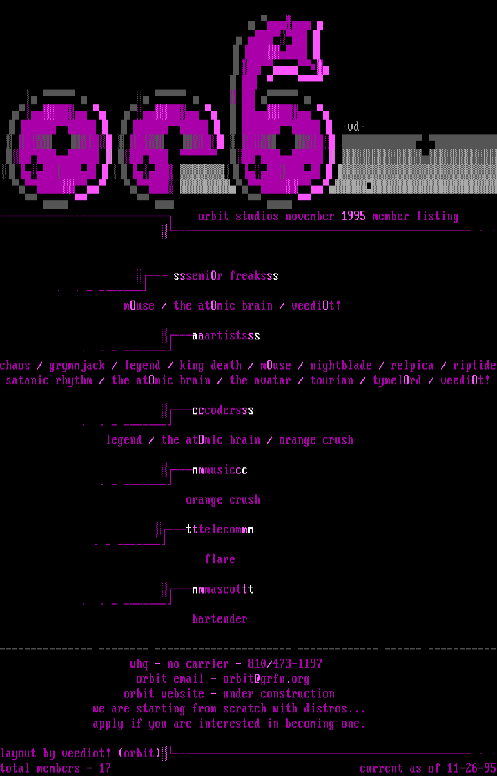 layout by veediot! orbit---- total members - 17 current as of 11-26-95