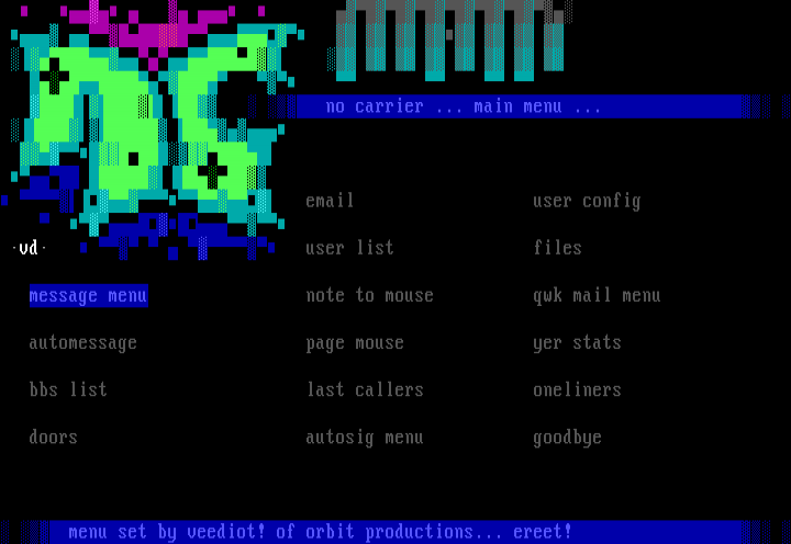 menu set by veediot! of orbit productions... ereet!