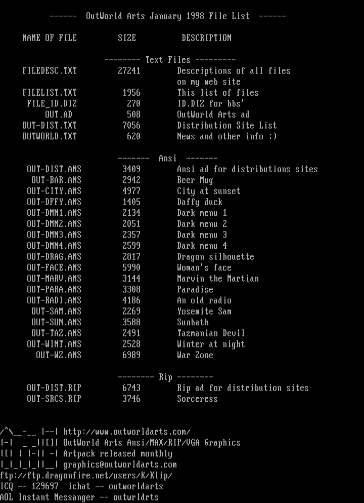 - OutWorld Arts Ansi/MAX/RIP/VGA Graphics