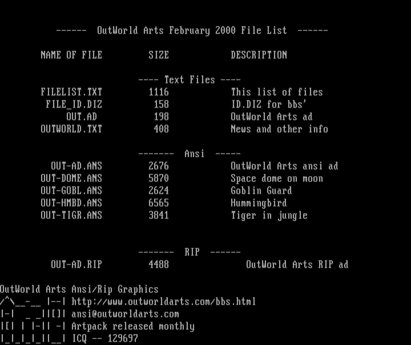------ OutWorld Arts February 2000 File List ------