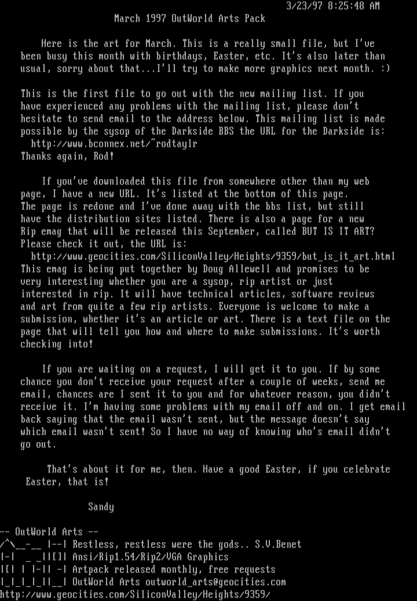 possible by the sysop of the Darkside BBS the URL for the Darkside is: