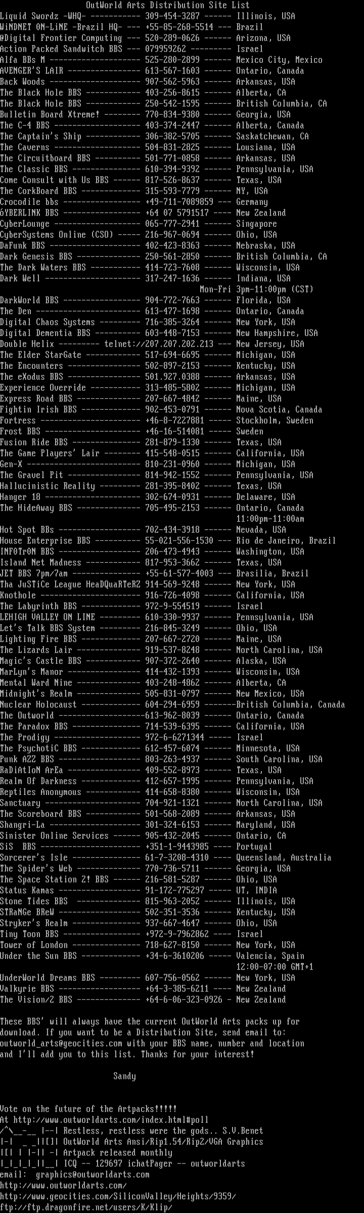 - OutWorld Arts Ansi/Rip1.54/Rip2/VGA Graphics