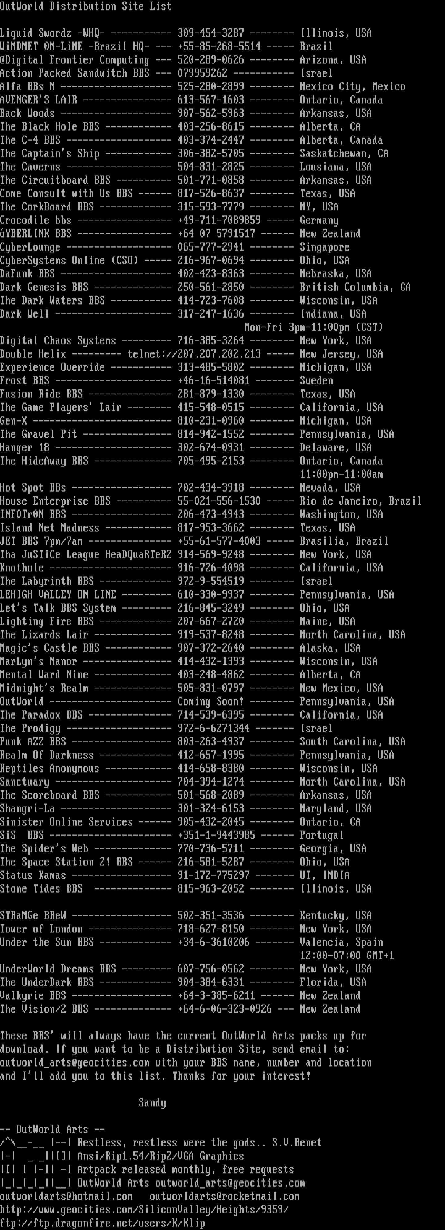 UnderWorld Dreams BBS --------- 607-756-0562 -------- New York, USA