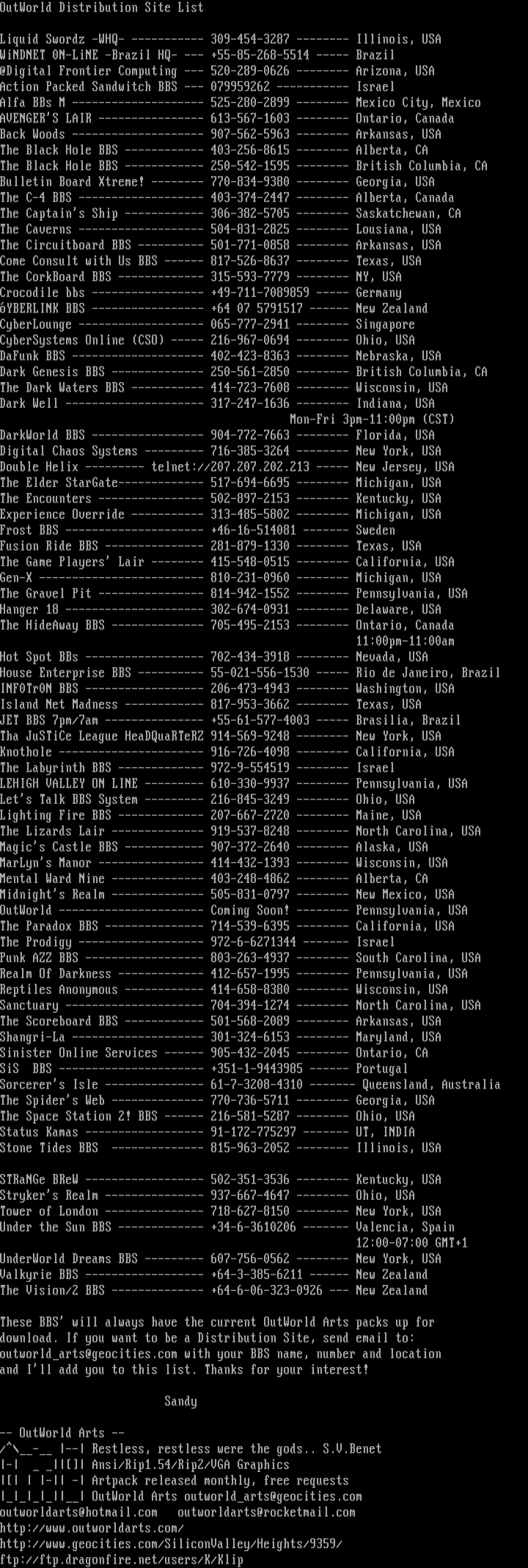 UnderWorld Dreams BBS --------- 607-756-0562 -------- New York, USA