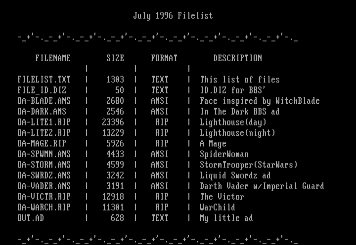July 1996 Filelist
