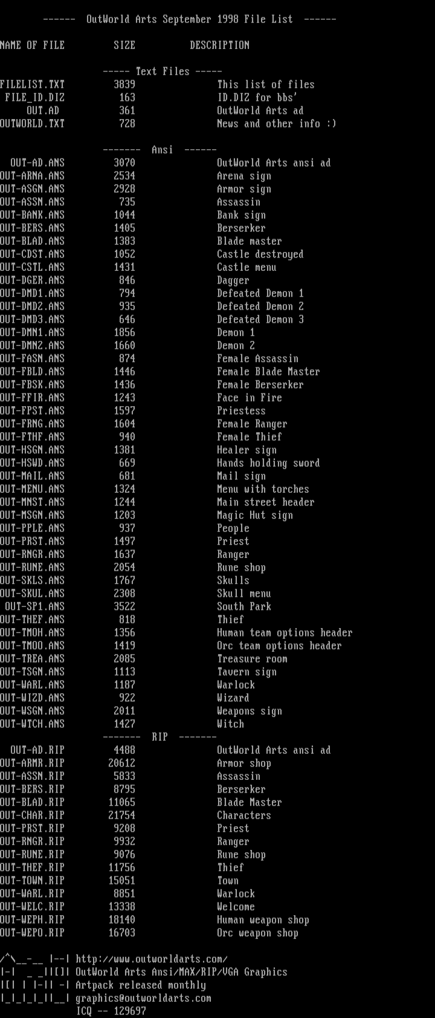 - OutWorld Arts Ansi/MAX/RIP/VGA Graphics