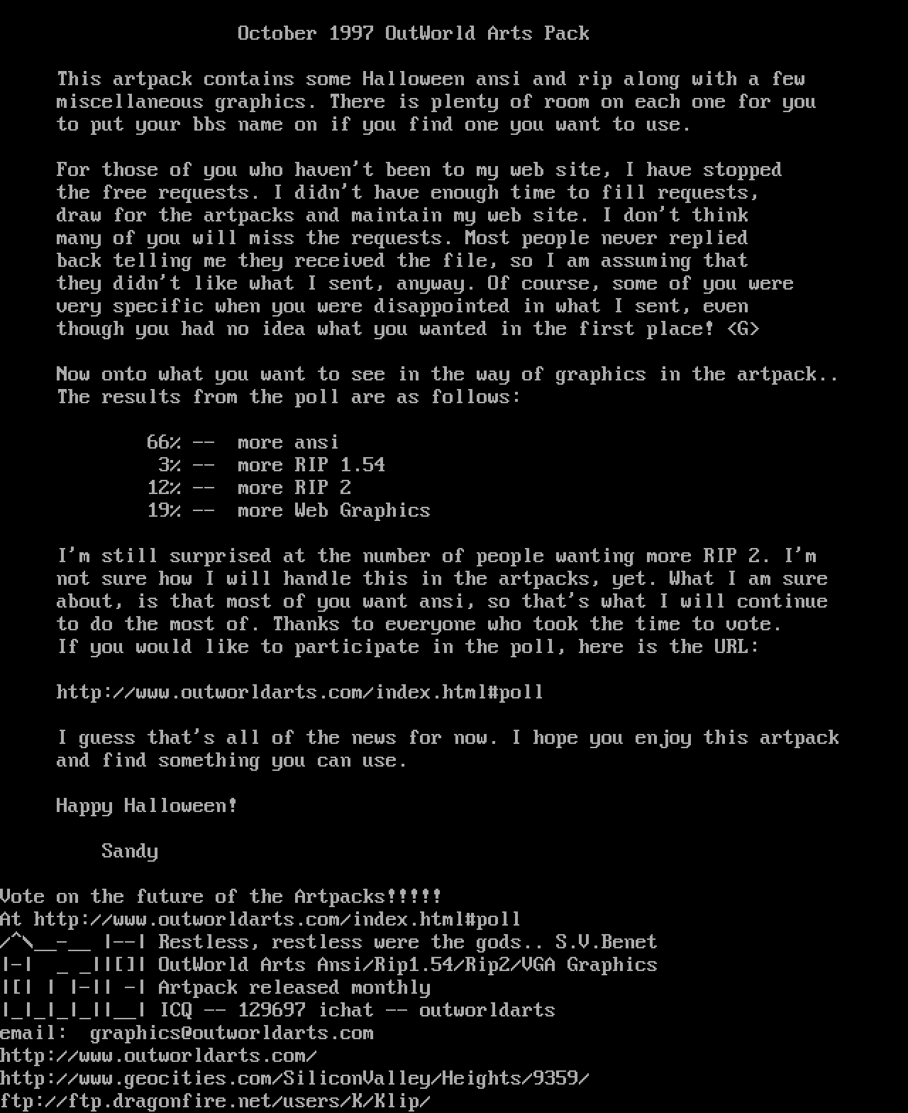 - OutWorld Arts Ansi/Rip1.54/Rip2/VGA Graphics