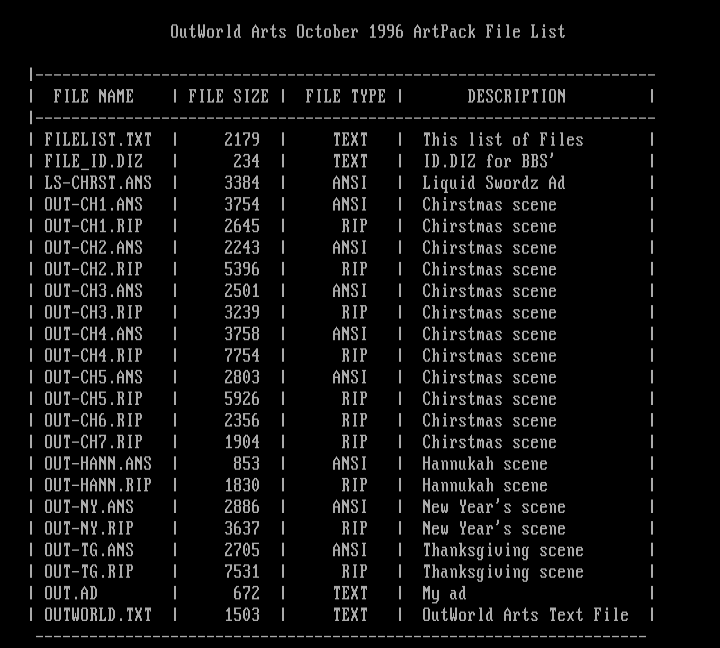 OUTWORLD.TXT 1503 TEXT OutWorld Arts Text File