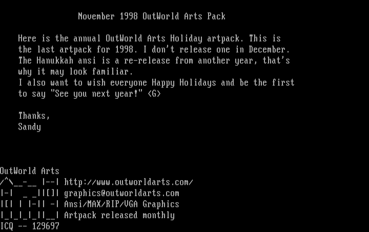 Here is the annual OutWorld Arts Holiday artpack. This is