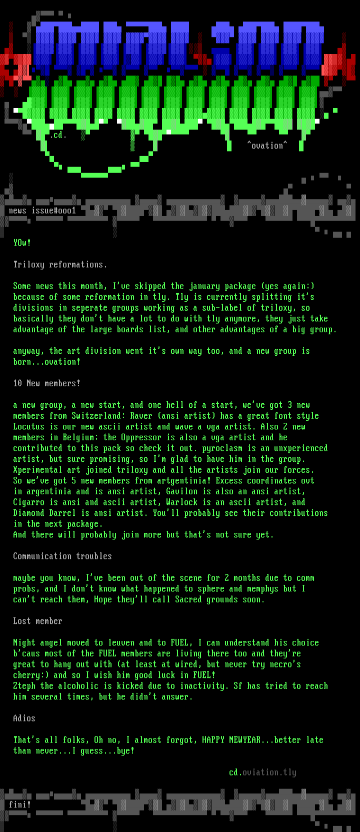 Locutus is our new ascii artist and wave a vga artist. Also 2 new