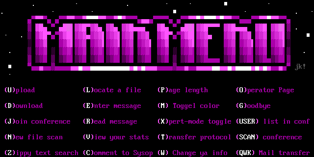 Zippy text search Comment to Sysop W Change ya info QWK Mail transfer