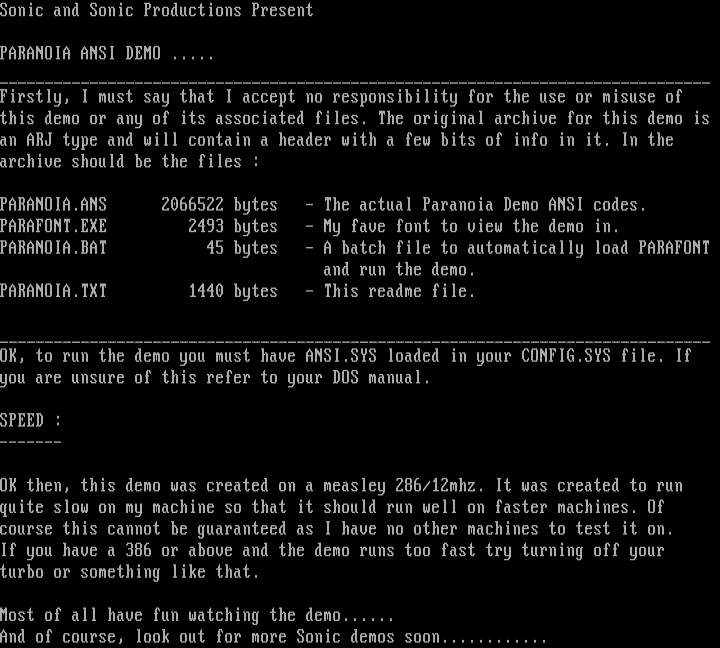 PARANOIA.ANS 2066522 bytes - The actual Paranoia Demo ANSI codes.