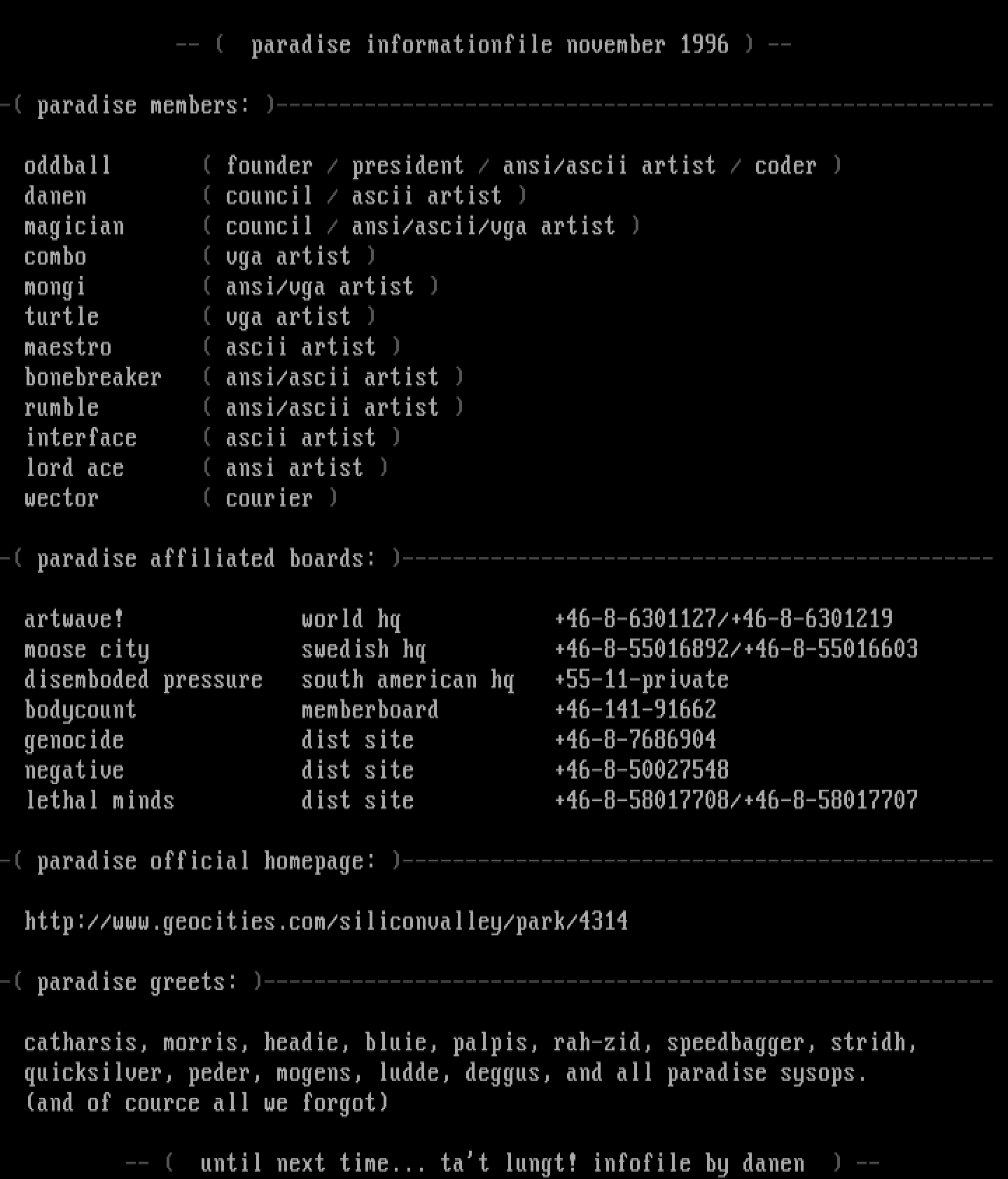 -- paradise informationfile november 1996 --