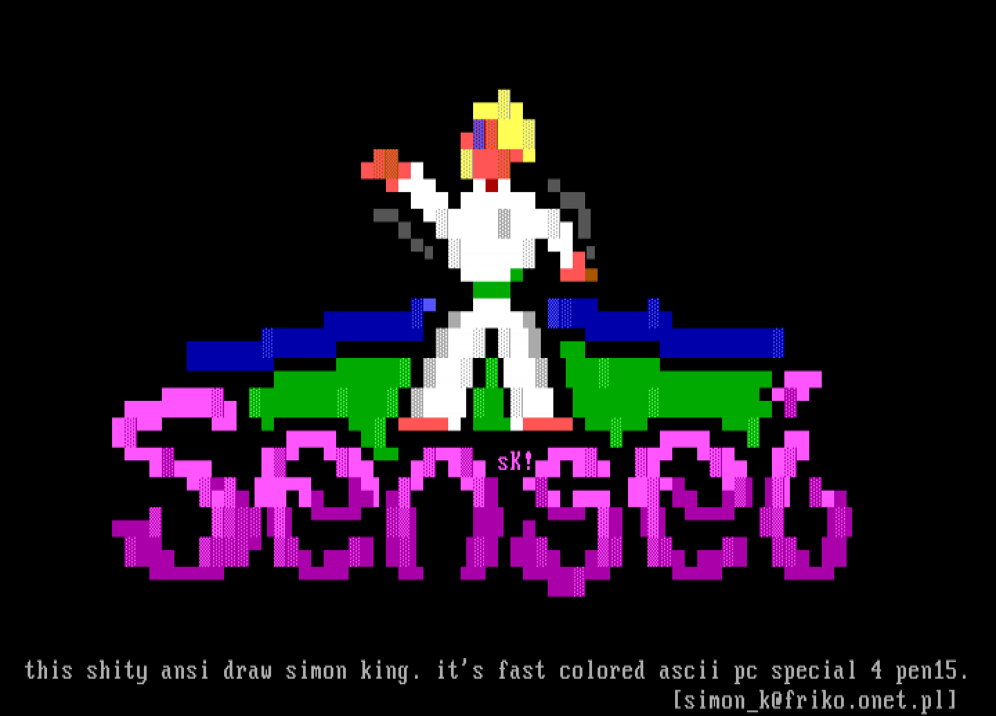 this shity ansi draw simon king. its fast colored ascii pc special 4 pen15.