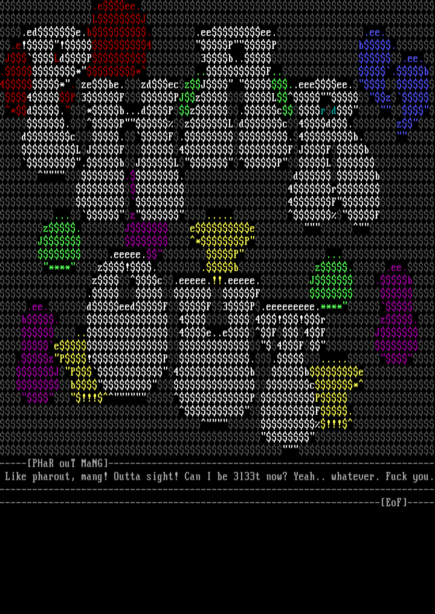 pharout, mang! Outta sight! Can I be 3l33t now? Yeah.. whatever.