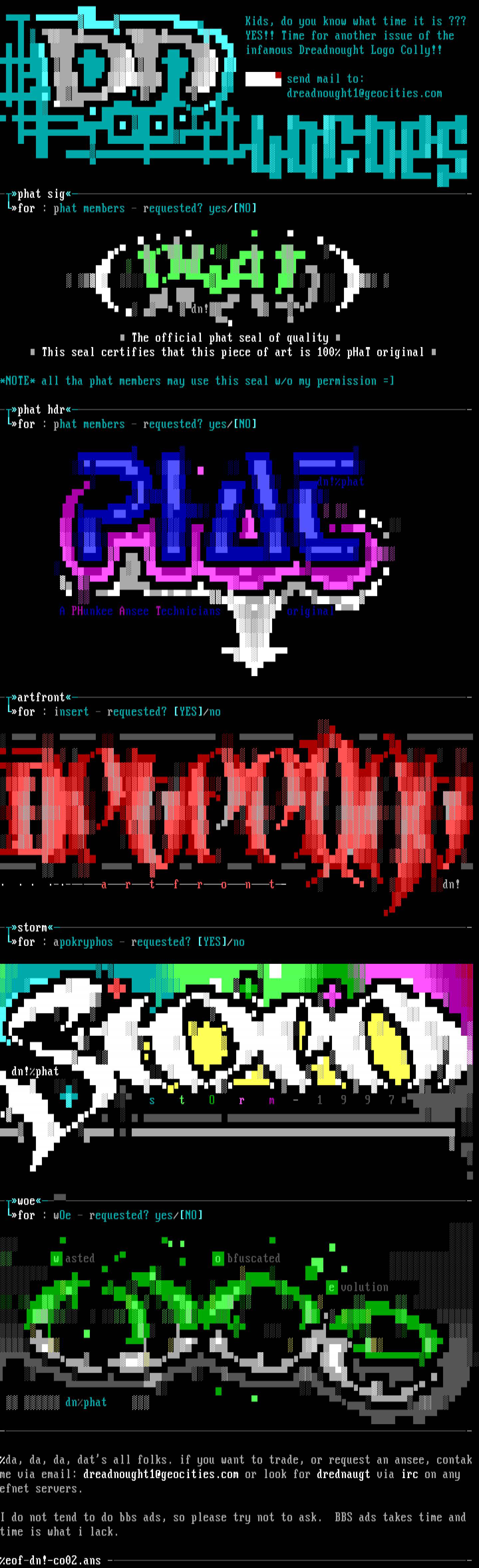 da, da, da, dats all folks. if you want to trade, or request an ansee, contak me via email: dreadnought1@geocities.com or look for drednaugt via irc on any