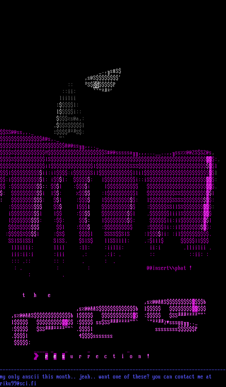 --------------------------------------------------------------------------------my only anscii this month.. jeah.. want one of these? you can contact me at