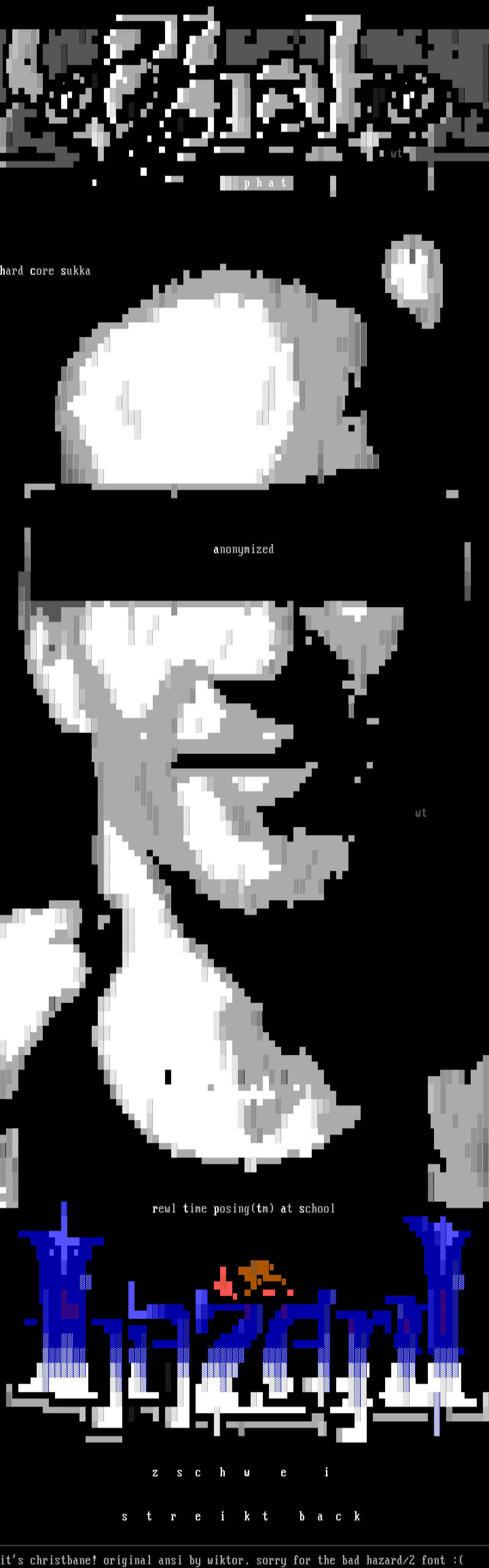 its christbane! original ansi by wiktor. sorry for the bad hazard/2 font :