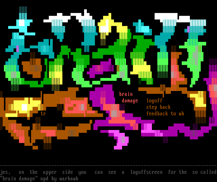 --------------------------------------------------------------------------------jes, on the upper side you can see a logoffscreen for the so calledbrain damage opd by warhawk
