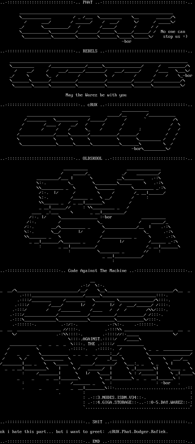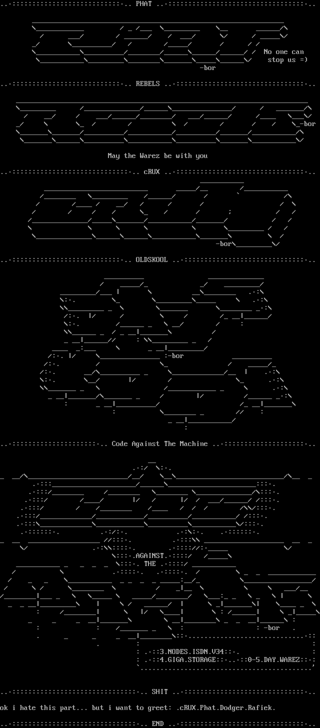ok i hate this part... but i want to greet: .cRUX.Phat.Dodger.Rafiek.